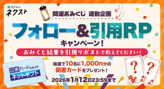 特設サイトで引いた「開運おみくじ」の結果を、ぜひキャンペーンポストの引用リポストで教えてください! カクヨムネクスト公式Xをフォロー&該当ポストに引用リポストしてくれた人の中から、抽選で10名様に図書カード1000円分をプレゼント!