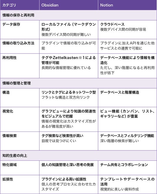 情報が溢れる現代において得たものを整理して、使える情報にまとめていくのは難しくなっています。それを可能にするのが「Obsidian」です。 Obsidianは、プライバシー性・柔軟性の高い Markdownノートアプリとして世界的に注目を集めています。 ノートアプリケーション「Notion」と機能の比較については、図表(*)をご確認ください。