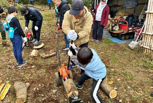 - 参加者全員で間伐作業として一本の大きな木を倒し、薪づくりまで体験できたことで、充実した時間となった。