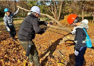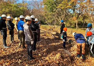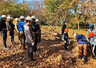 当日は、当社社員やその家族を含む13名が参加し、NPO法人自然環境アカデミー、(公財)東京都環境公社の協力のもと、八王子滝山里山保全地域において、自然観察、立木の間伐、玉切り、薪づくりを行いました。晴天にも恵まれ、参加者一同が自然と触れ合いながら、環境保全について深く学ぶ機会となりました。今後もこのような活動を通じて、持続可能な社会の実現に貢献してまいります。
