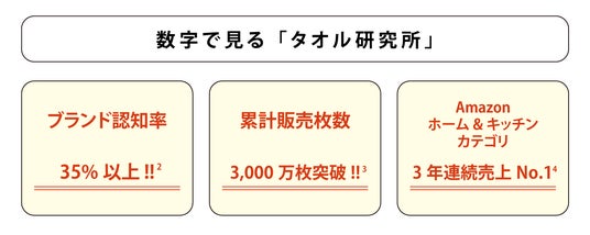 「タオル研究所」は自家需要のタオルとしては日本でトップクラスの知名度があり、Amazon.co.jpで最も売れているタオルブランド(1)となります。