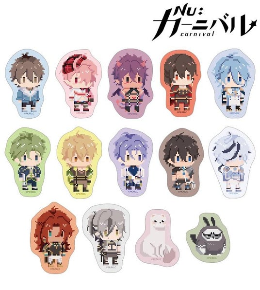エイト、エスター、モルフィス、八雲、エドモンド、オリビン、ケシー、玖夜、ガル、ブレイド、エンテン、レイ、トパ、親父の描き起こしドット風ちびキャライラストをメインにデザインし、ダイカットのステッカーに仕上げました。