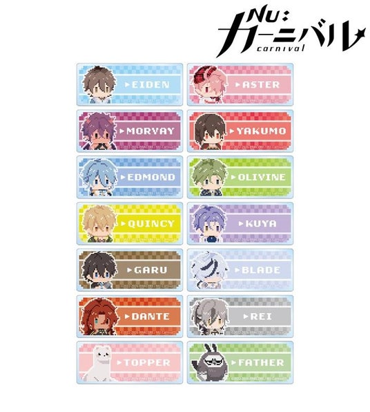 エイト、エスター、モルフィス、八雲、エドモンド、オリビン、ケシー、玖夜、ガル、ブレイド、エンテン、レイ、トパ、親父の描き起こしドット風ちびキャライラストをメインにデザインし、アクリルネームプレートに仕上げました。