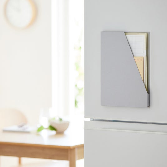 「マグネット書類収納ケース」は、裏面にマグネットを内蔵しており、冷蔵庫や玄関扉など、日常の生活動線上に書類の「定位置」を簡単に作ることができます。提出期限のある書類などを目立つ場所に収納することで、出し忘れや提出忘れを効果的に防ぎます。