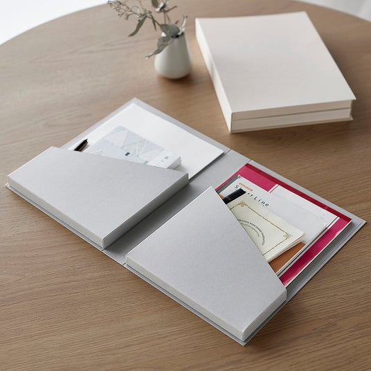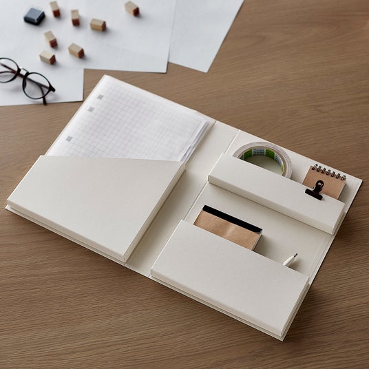 ・本棚やリビングに、大事な書類をひとまとめにできるケース・2分別タイプは内側左右のポケットでA4クリアファイルサイズが収納可。3分別タイプは片側が小ポケットで折り紙や手紙入れにも便利