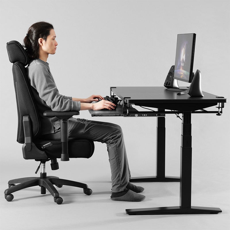さらに、旧モデルより耐荷重をUPしたタフな設計により、激しいタイピングやマウス操作時にもガタつきやグラつきを抑え、安定したゲーム・クリエイティブ環境を実現します。精密な操作が求められるPCゲームはもちろん、DTMにおける鍵盤操作などにも集中力を途切れさせることなく没頭できる、快適な使用感を提供します。