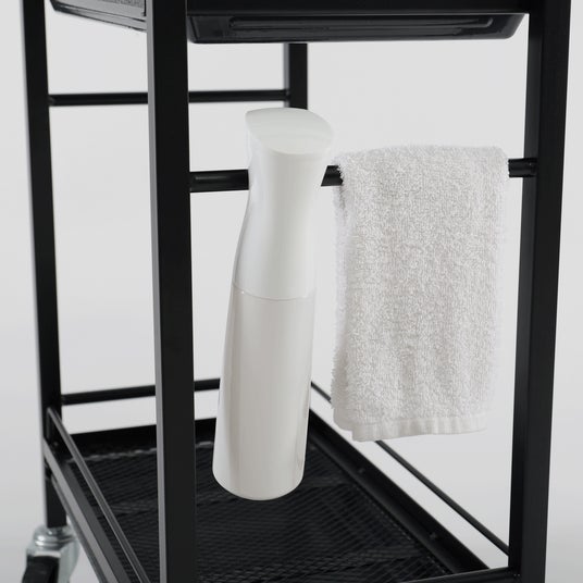 園芸資材の保管・収納にも置き場に困りがちな肥料やジョウロなどのアイテムも、これ一台にすっきりまとめて置いておけます。サイドのハンギングバーには葉水用の霧吹きなども掛けることができ、植物のお世話がしたくなったらサッと手にとることが可能です。