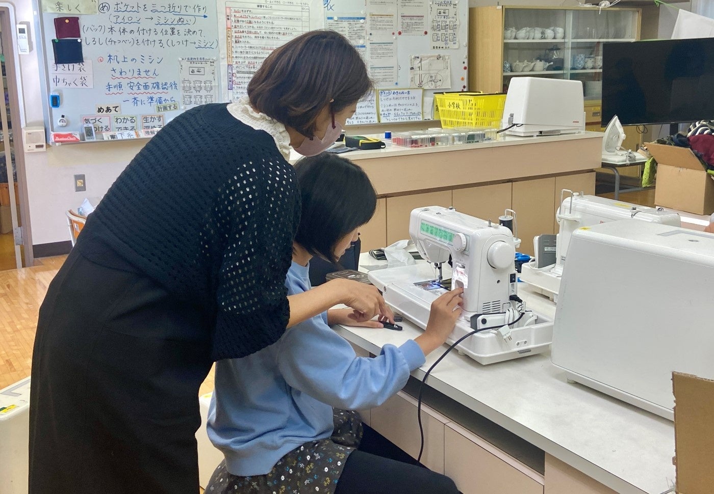 布の扱い方、ミシンの使い方など、子どもたちの制作補助を行うため、合計5回授業にも参加させていただきました。