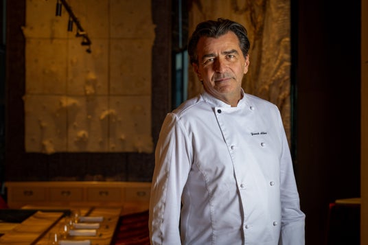 1968年フランス・ピュトー生まれ。フランス料理界を代表するスターシェフ。現在フランス国内にミシュラン三つ星レストランを2軒同時に持つ、唯一の存在。1986年に料理の道へ進み、2001年にフランス農事功労賞を受賞。2003年、パリを代表する老舗ホテルの『LE MEURICE』の総料理長に就任、翌年2004年には二つ星を獲得。2007年には、若干40歳の若さで三つ星の栄誉を得る。同年にはフランス国家功労勲章、芸術文化勲章も受章し、歴史に名前を刻んでいる。翌年には、「シェフ・ オブ・ジ・イヤー」にも選出されている。2014年満を持して自身の名前を冠した『ALLENO PARIS』を PAVILLON LEDOYEN内にオープン、翌年2015年にミシュラン三つ星を獲得して以来、その地位を保つ。2017年フランス・クールシュヴェルの『LE 1947』でも三つ星を獲得し、17のミシュラン星を保持。現在、フランス、モロッコ、ドバイ、中国、香港、韓国など、全世界に19店舗を展開している。