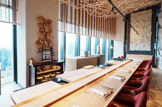フランスのミシュラン3つ星シェフ、ヤニック・アレノ氏と、和食の職人として30年の経験を持つ料理長 安田至が生み出す、モダンで革新的な料理が集結する「鮨ラビス 大阪 ヤニック・アレノ」。パリ、モナコに続く世界で3店舗目、「鮨ラビス」日本初上陸として開店したこのレストランでは、フュージョンではなく、純粋な和と洋が呼応し合う品々を提供しています。ホテル最上階の37階に位置し、大阪の街を見渡せる素晴しいロケーションに、珊瑚をモチーフにした壁画やゴージャスなファブリックなど、パリやモンテカルロの店舗と同じアートピースを携えたコンテンポラリーで静謐な空間も、その魅力の一つです。