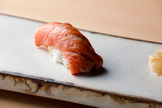 握りのメインとなるのは大トロ。隠し味の揚げたエシャロットと生姜はヤニック氏のアイデア