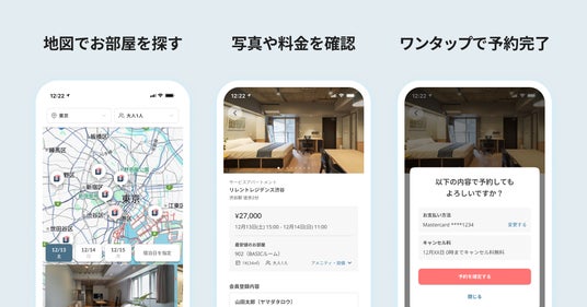 この特性に基づき、必要条件を最小限に削ぎ落とした「3タップで予約が完了」する機能を開発しました。これにより、中長期滞在中のunitoユーザー(入居者)が気分転換に別のunito物件を利用したり、初めて利用される方でも、unitoならではの充実した家具家電を備えた部屋をスピーディに確保することが可能になります。