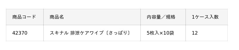このような背景から、「スキナル 排泄ケアワイプ〔さっぱり〕」は水や洗浄備品を必要としない清拭を可能にし、日常ケアの負担軽減と衛生管理の向上に貢献します。