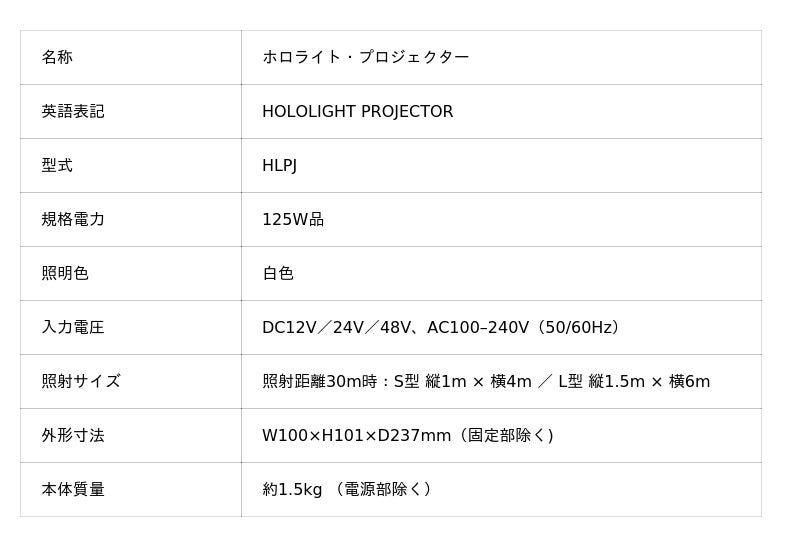 「ホロライト・プロジェクター」は、工事・建設現場などの作業環境における安全性向上を目的とした、プロジェクタータイプのLED照明です。従来製品では実現できなかった高精細な漢字やシンボルの表示が可能で、スクロール表示や複数パターンの切り替えにも対応しています。「立入禁止」「頭上注意」「安全第一」などの文字表示により、人と車両が交差する場所や、クレーンが頭上を通過するエリアなどの危険箇所において、的確で分かりやすい注意喚起を行います。また、安全用途に加え、イベントや展示会、施設案内などの演出用途にも活用可能です。来場者誘導サインやメッセージ投影など、視認性の高い光表示により、情報発信と演出効果を両立します。