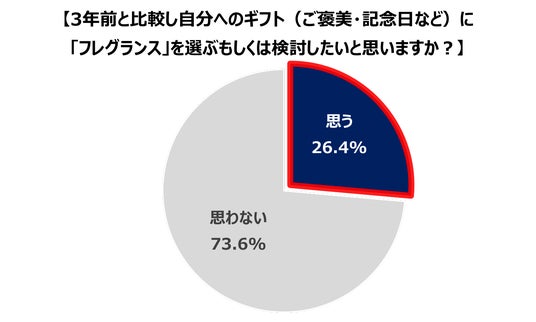 ◆4人に1人が、3年前と比べて「自分へのギフト(ご褒美・記念日)に『フレグランス』を選ぶもしくは検討したい」。身だしなみや美容へのニーズの他、「推しが使っているものを試してみたい」という声も。