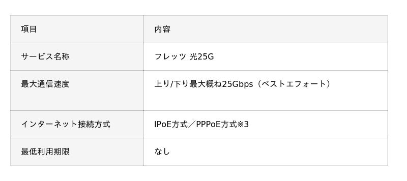 ※2 当社調べで、国内において、商用提供されている25Gbpsサービス(FTTHアクセスサービス)が存在しないことを確認。