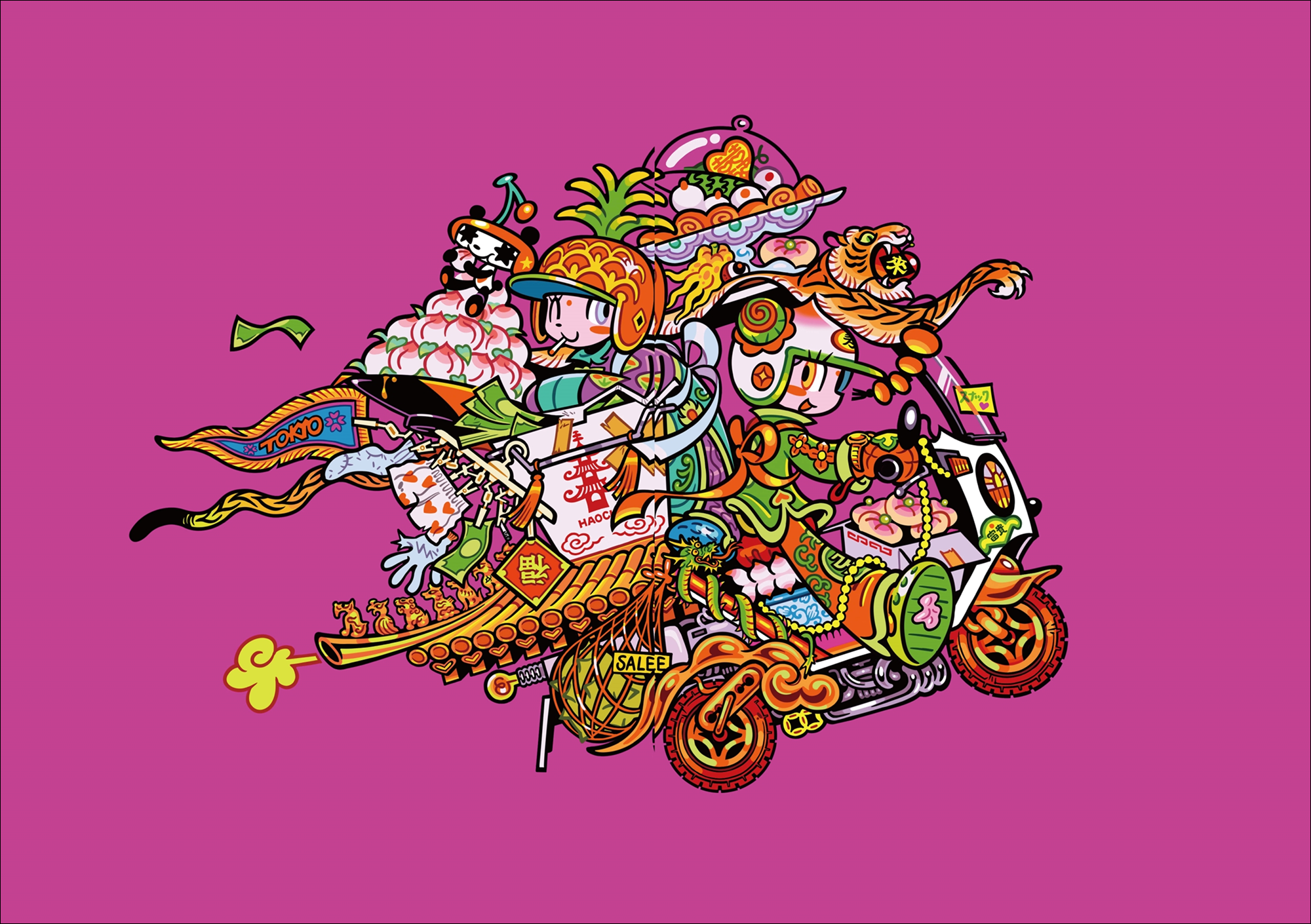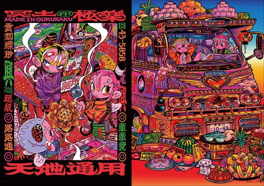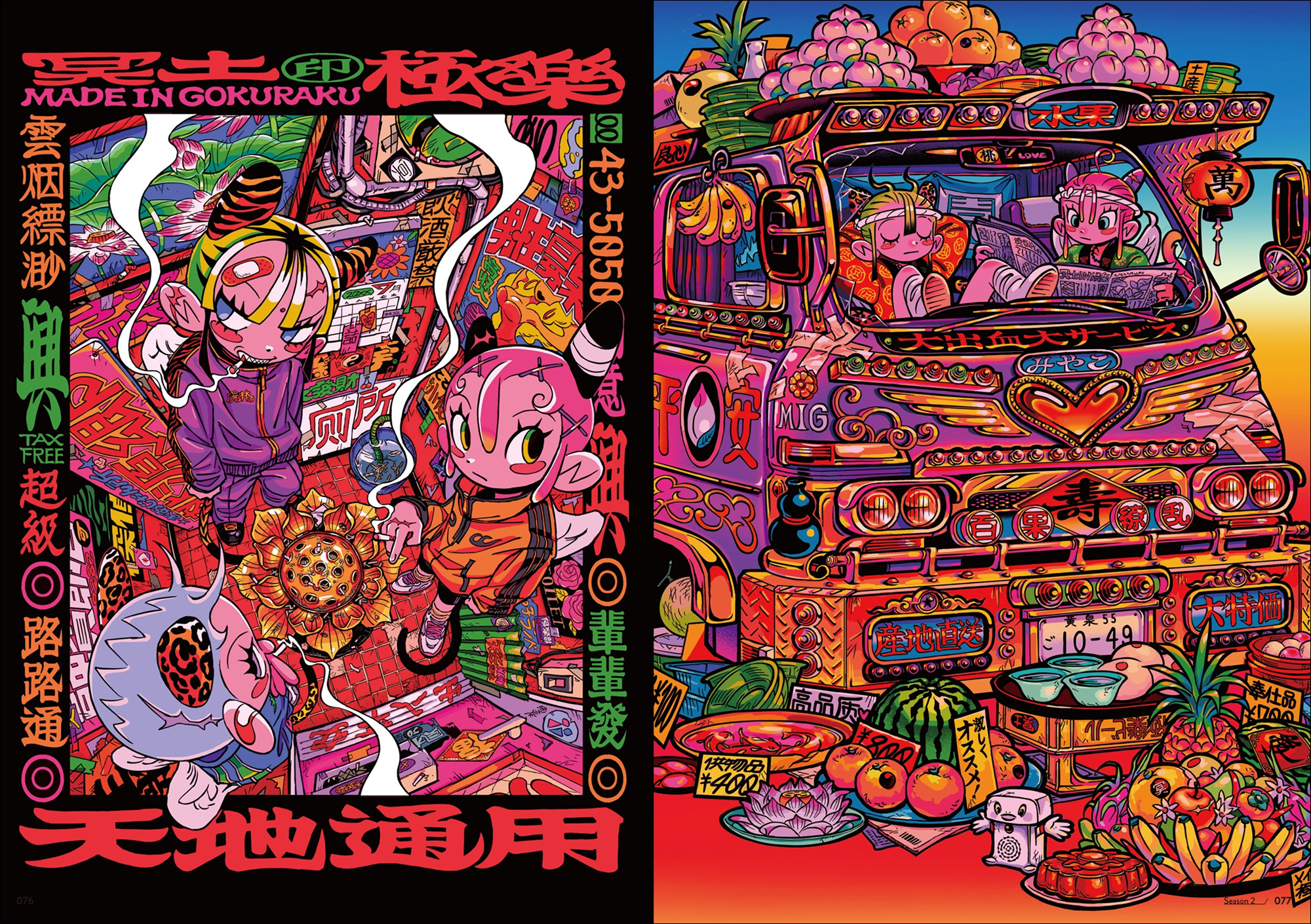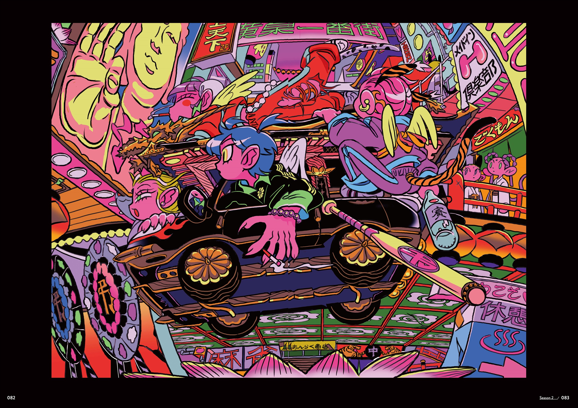 躍動感ある画面構成と極彩色の世界観が魅力的で、アナログ/デジタルを使いこなす。