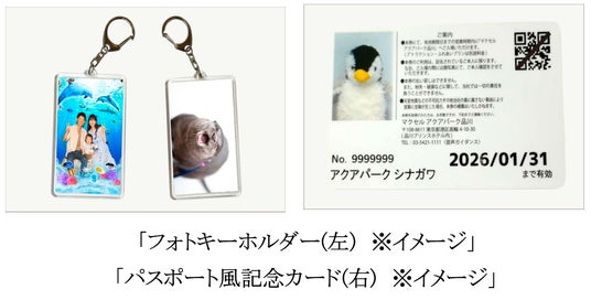 当日撮影したご家族写真を使った、世界にひとつだけのフォトキーホルダー。“はじめての水族館”の瞬間を、いつでも手に取って思い出せる記念品です。さらに、プラン当日の日付が刻まれた「パスポート風記念カード」もプレゼント♪