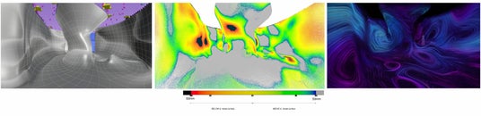 左:デジタルで作成した形状、中央:誤差を可視化した図、右:現実の空間