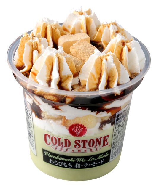 わらびもち・和・ラ・モード (500円)わらびもち・和・ラ・モードは、幅広い年齢層に好まれる抹茶フレーバーのアイスクリーム。トップにはわらびもちと黒蜜をトッピングした「和」テイストな商品。
