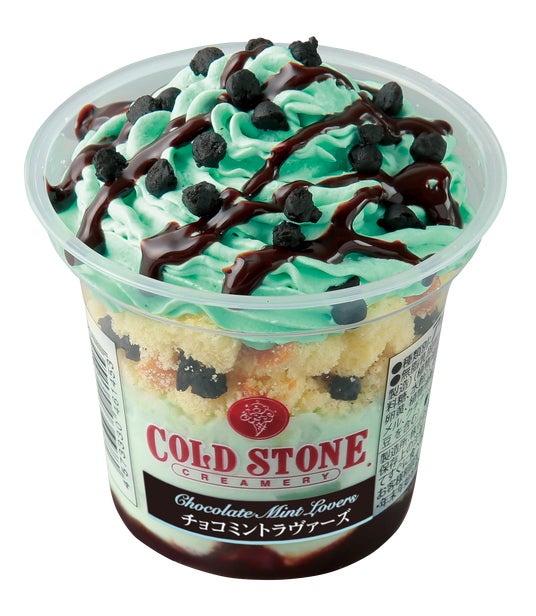 チョコミントラヴァース (500円)チョコミントラヴァーズは、コールドストーンで大人気のミントアイスクリームがパフェアイスで登場!ミントとチョコレート