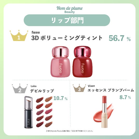 本ベストコスメ企画は半期ごとに【Nomde Beauty×Nom de plume】として実施している企画です。2025年はより多様化する美容ニーズやトレンドを反映し、全12部門に拡大。メイクアップ・スキンケアをはじめ、Z世代のリアルな「今」を反映したラインナップとなっています。