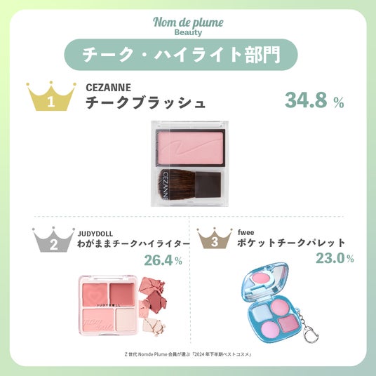 この度、2025年にSNS上で注目を集めた商品を編集部が厳選ノミネートし、Z世代による人気投票を実施しました。その中から各カテゴリの1~3位を「2025年Nomde Beautyベストコスメ」として発表いたします。