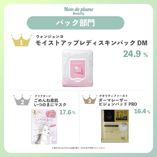 化粧水や乳液・クリーム、美容液部門では、Qoo10などのECサイトで購入しやすく、成分訴求が明確な韓国ブランドのスキンケアアイテムが多くランクイン。一方でパックや洗顔・クレンジングなどこまめな買い替えが必要なアイテムについては、ドラッグストアで手軽に購入できる国内ブランドが支持されました。