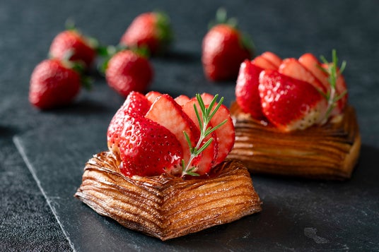 ザクザク食 感のデニッシュにあまりんと自家製カスタードクリーム 、いちごのコンフィチュールを合わせました。