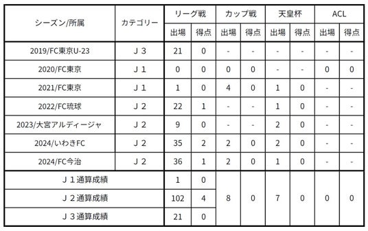 4シーズン、FC琉球、RB大宮アルディージャ、いわきFC、FC今治のために全力で戦ってきました。結果を出せないシーズンもありましたが、すべて悔いのないシーズンだったと思います。それぞれのチームで支えてくれた方々の想いを乗せて、必ずFC東京でクラブの目標であり自分の目標でもあるJ1リーグ優勝を達成したいと思います。