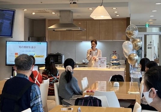 はじめに、同研究所 所長の三神彩子氏が、本冊子で紹介しているエコ・クッキングのポイントを説明し、続いて、東京家政大学 栄養学部 准教授 赤石記子氏が、本冊子に掲載した30周年記念レシピの特徴と調理方法を紹介しました。