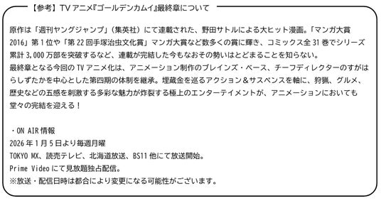 東京地下鉄株式会社(本社:東京都台東区、代表取締役社長:小坂 彰洋、以下「東京メトロ」)は、「ゴールデンカムイ×東京メトロ デジタルスタンプラリー」を2026年1月9日(金)から2026年2月8日(日)まで実施します。