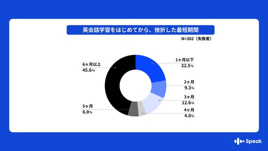 3.【3ヶ月の壁】失敗者の約半数が学習開始から「3ヶ月以内」に挫折。高い意欲で始めても、話さない学習は挫折の原因か
