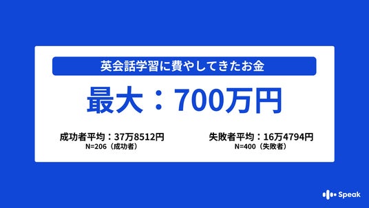 AI英会話「スピーク」(運営:スピークジャパン合同会社)は、英会話学習における「成功」と「失敗」の分かれ目を科学的に解明するため、麗澤大学外国語学部教授 森秀夫氏監修の下、英会話学習の成功者・失敗者計606名(成功者206名 / 失敗者400名)を対象に「英会話学習成功者、失敗者から比較する英会話学習実態調査」を実施しました。