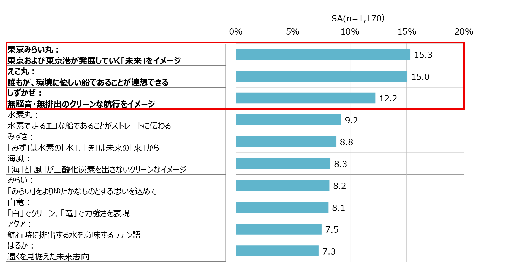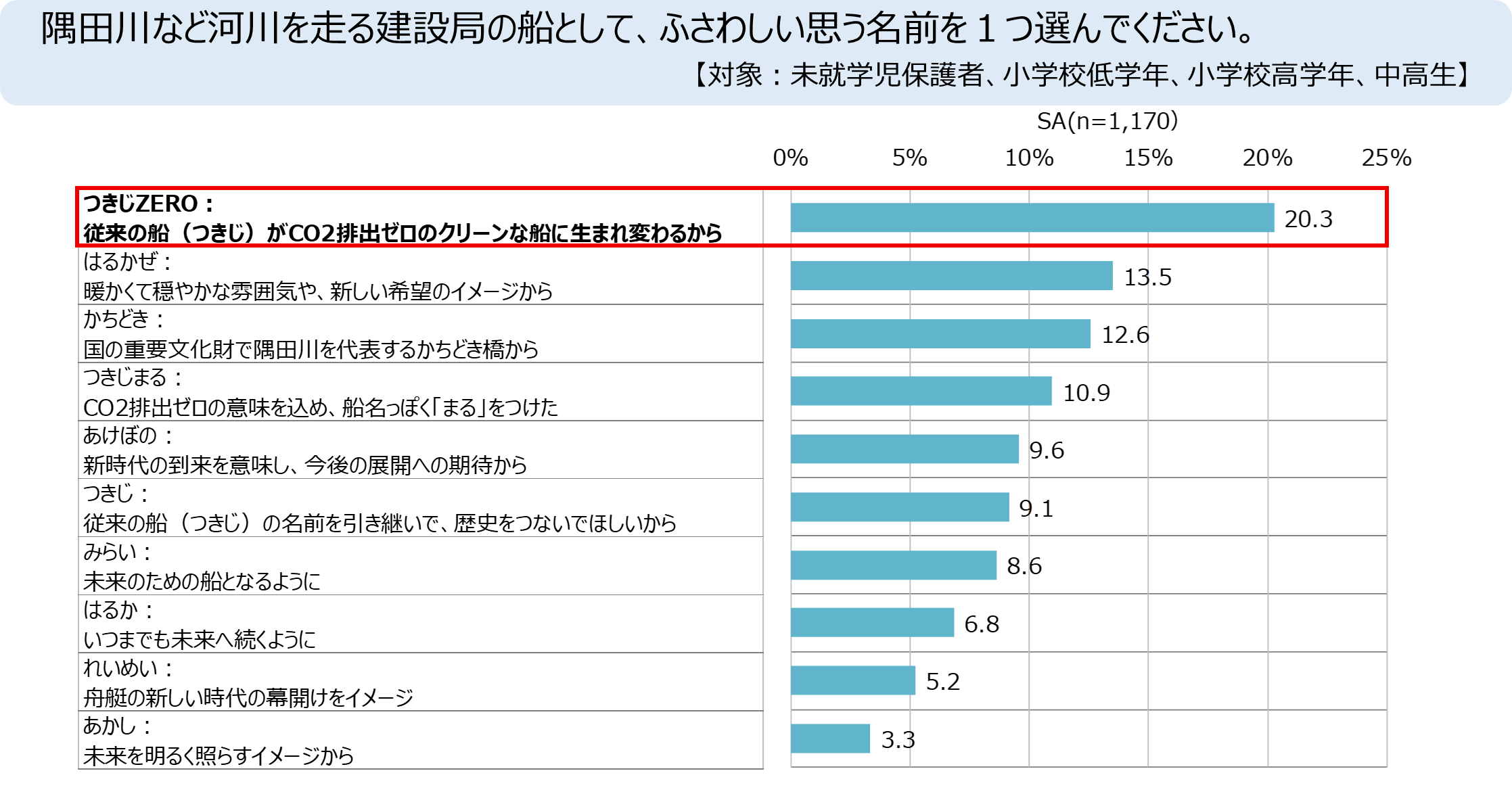 隅田川など河川を走る建設局の船として、ふさわしい思う名前を1つ選んでください。