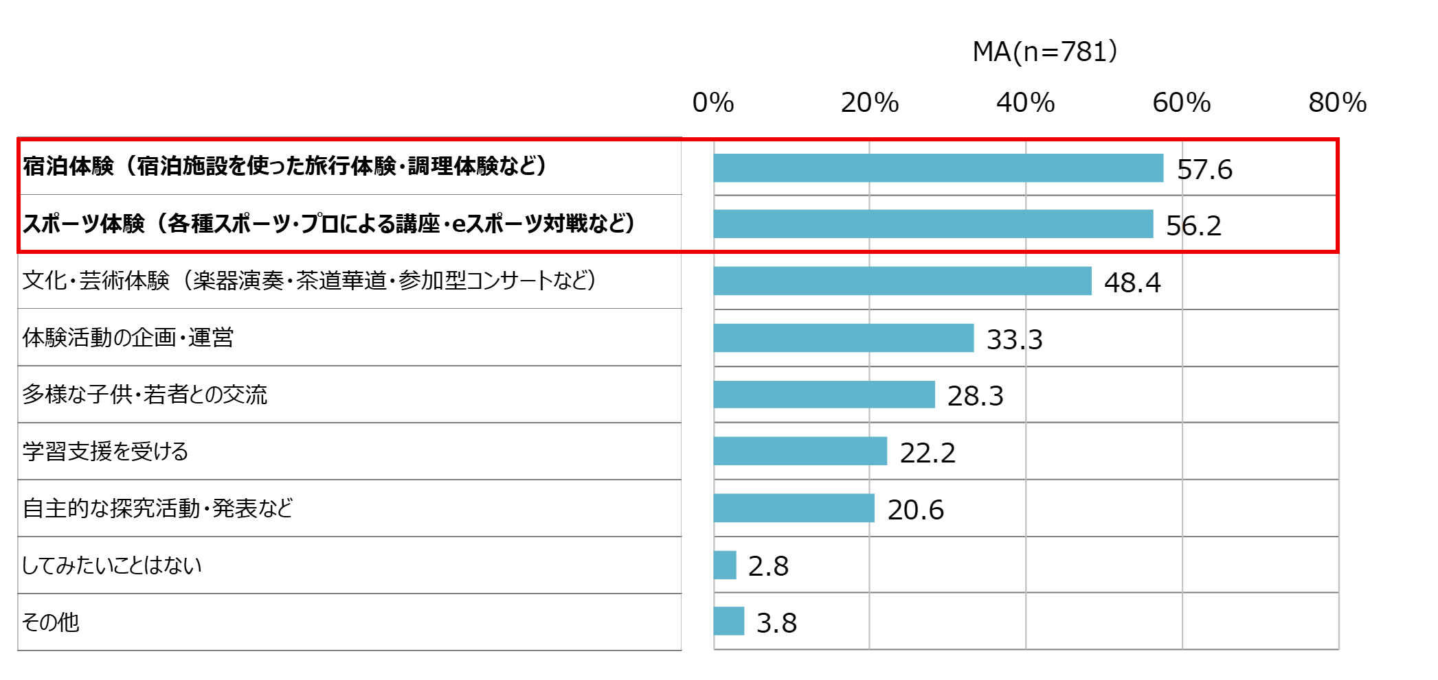 あなたは、(仮称)子供・若者体験活動施設でどのようなことをしてみた いですか。