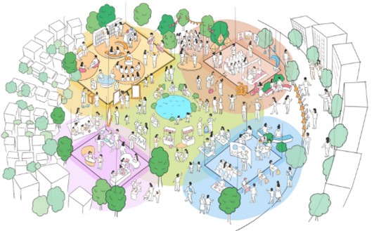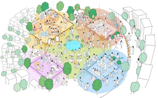 神宮前五丁目地区に新しい図書館、劇場、広場などをつくる予定です。