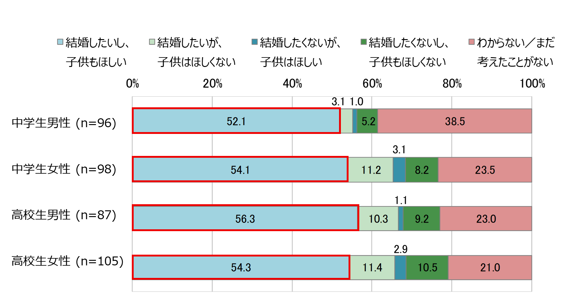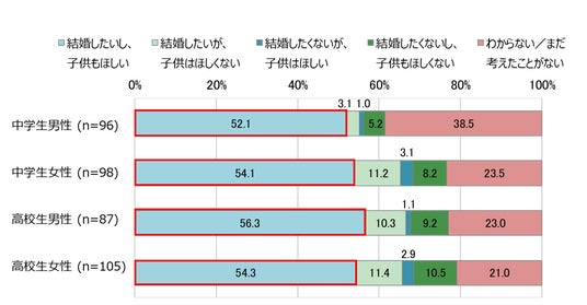 将来、結婚や子供を持つことについて、今の気持ちに近いものを選んでください。