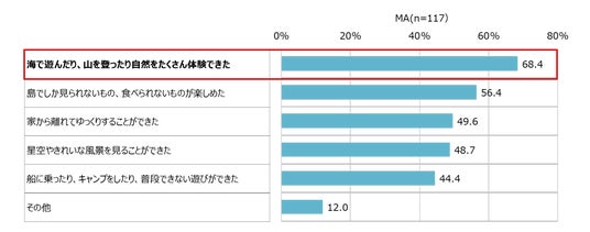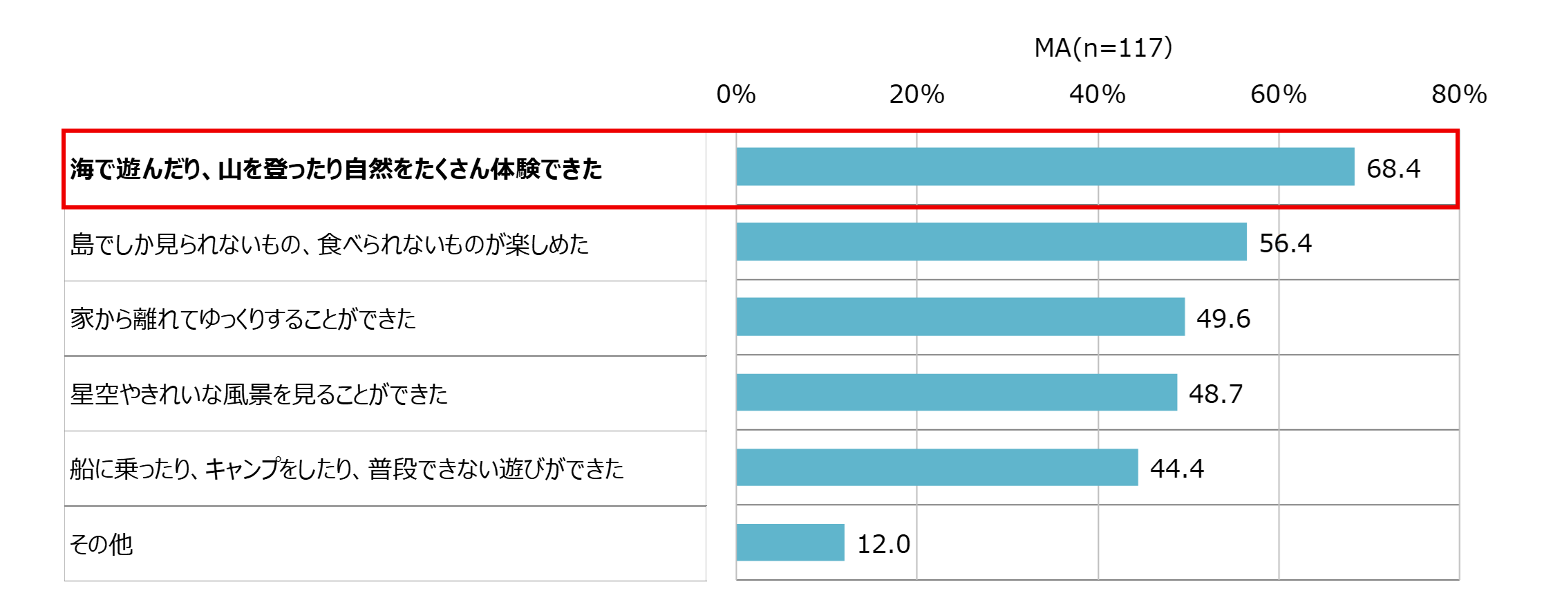 島で楽しかったことや思い出に残っていることはなんですか。(伊豆諸島に行ったことがあると答えた人) 【対象:未就学児保護者、小学校低学年、小学校高学年、中高生】