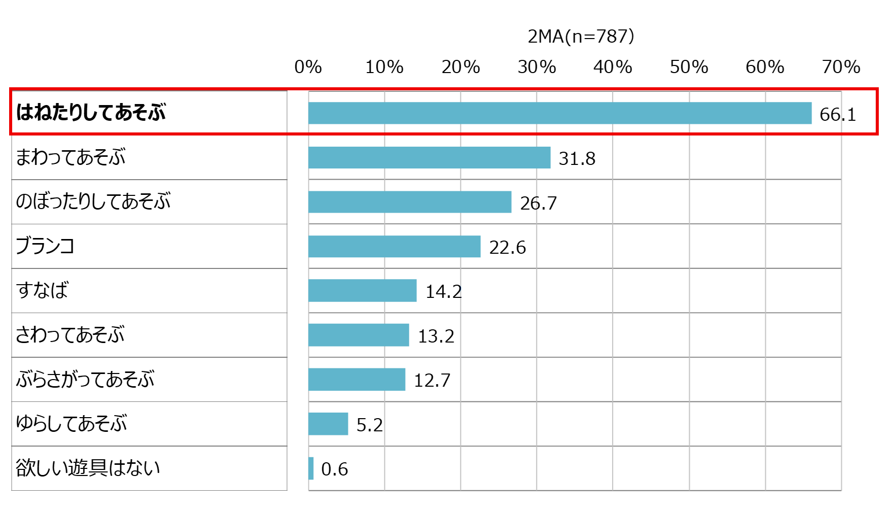 ユニバーサルデザイン遊具のなかで、海の森公園のわいわい広場にあったらいいなと思う遊具を2つ選んでください。 【対象:未就学児保護者、小学校低学年、小学校高学年】