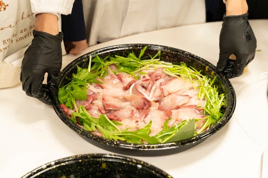 うま味を含む食材を追加するたびにぶりしゃぶを味わい、異なるうま味のかけ合わせで変化、深まる味わいを体験