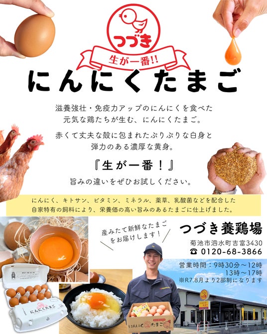 今後も、自然と調和した飼育と真心を込めた生産によって、「にんにくたまご」が地域の食卓に笑顔と活力を届けていくことが期待されます。