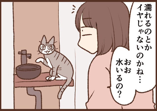 1階には洗面所と風呂場の他に手洗い用に小さい水栓があるのですが、そこにもトトがいつもいて、人が通るたびに「水を出せ 水を出せ」と言ってきます!(笑)