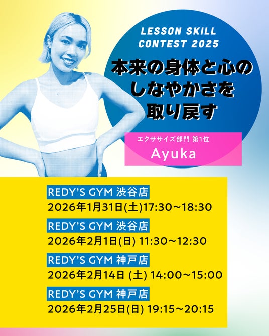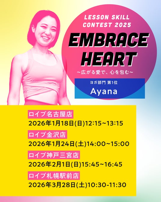 全国に180店舗以上の女性専用フィットネスブティックスタジオを運営する株式会社LOIVE(本社:北海道札幌市、代表取締役:前川彩香)は、インストラクター149名が参加した社内コンテスト「LESSON SKILL CONTEST 2025」の最終審査を終え、ヨガ・ピラティス・エクササイズ各部門の優勝者を決定いたしました 。 これに伴い、各部門でNo.1に輝いたインストラクターが全国のスタジオを巡り、優勝レッスンを提供する「INSTRUCTOR TOUR(インストラクターツアー)」を2026年1月より開催いたします