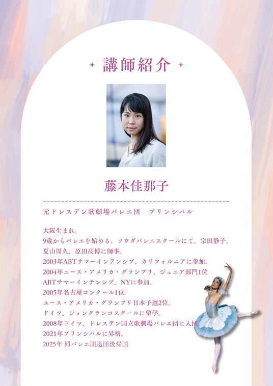 なんと!元ドレスデン国立歌劇場バレエ団プリンシパルの藤本佳那子先生をお迎えします!
