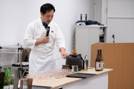 ワークショップは、燗酒ペアリングで有名な飲食店「高崎のおかん」店主の高崎 丈(たかさき・じょう)氏を講師に迎え、同じ日本酒を複数の温度帯や酒器で提供し、温度や酒器などの条件の違いが、味わいにどのような変化をもたらすのかを、参加者に体験していただきました。