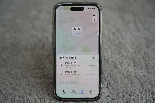 事前に登録をしておくことで、iOSで使える「探す」アプリ上で、この防犯ブザーの位置を見ることができます。