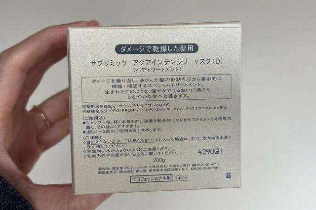 こちら、資生堂の「サブリミック アクアインテンシブ ヘアマスクD」です。