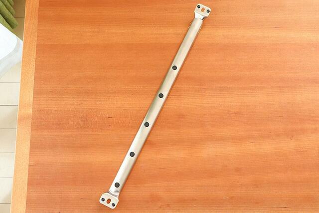 シンクの奥行きに合わせてバーの伸縮部を調整し、背面のネジを締めてからずれないようにセットします。