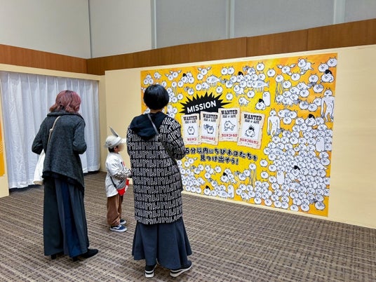 そのほかにも、ちびネコを探し出すミッションや、来場者が好きなにゃんこを描いて貼り付けられる「にゃんこ貯蔵庫」など、参加型の展示が用意されています。展示を見るだけでなく、体験できる仕掛けもあり、会場内には自然と笑顔が広がっていました。